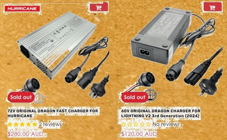 We stock the same XVE OEM chargers used on the Dragon branded models, with Australian RCM compliance. Sourced directly from the XVE factory, Shenzhen.