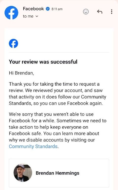 During the suspension, profile of facebook.com/brendan.hemmings was temporarily used.