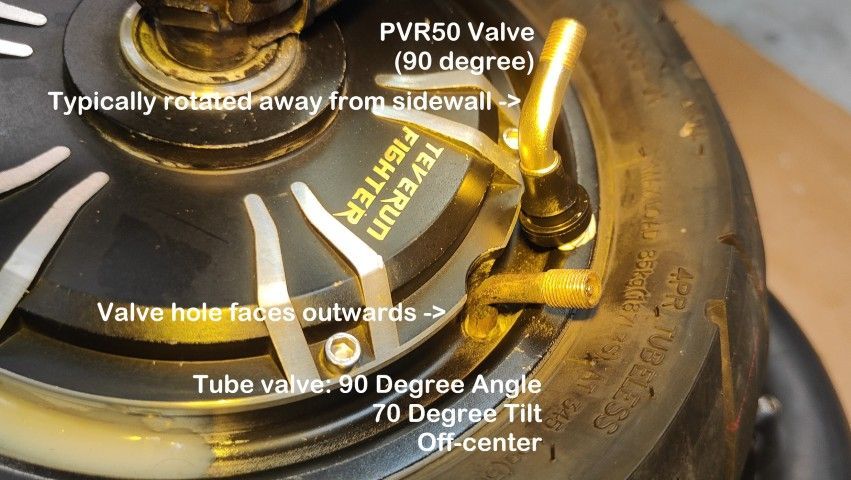 This tube aligns the valve well where valve hole is located off-centre of the rim, adjacent to the bead/sidewall or where the valve hole faces outwards rather than towards the axil. This tube is often adopted as alternative to 90 degree (see notes).